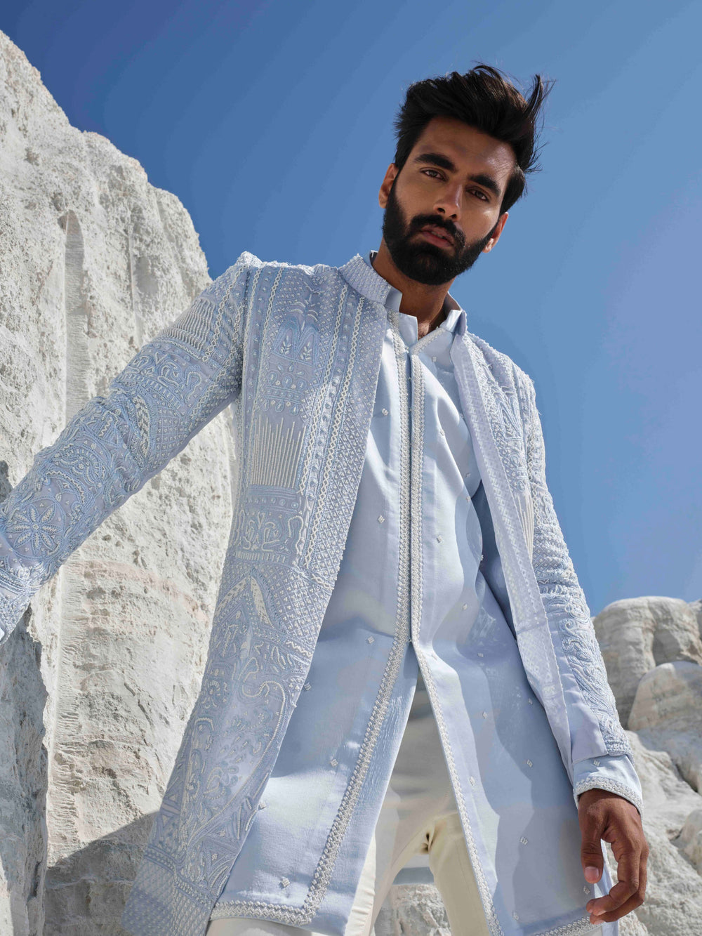 Jade - Ivory Tonal Sherwani with Pleated stole