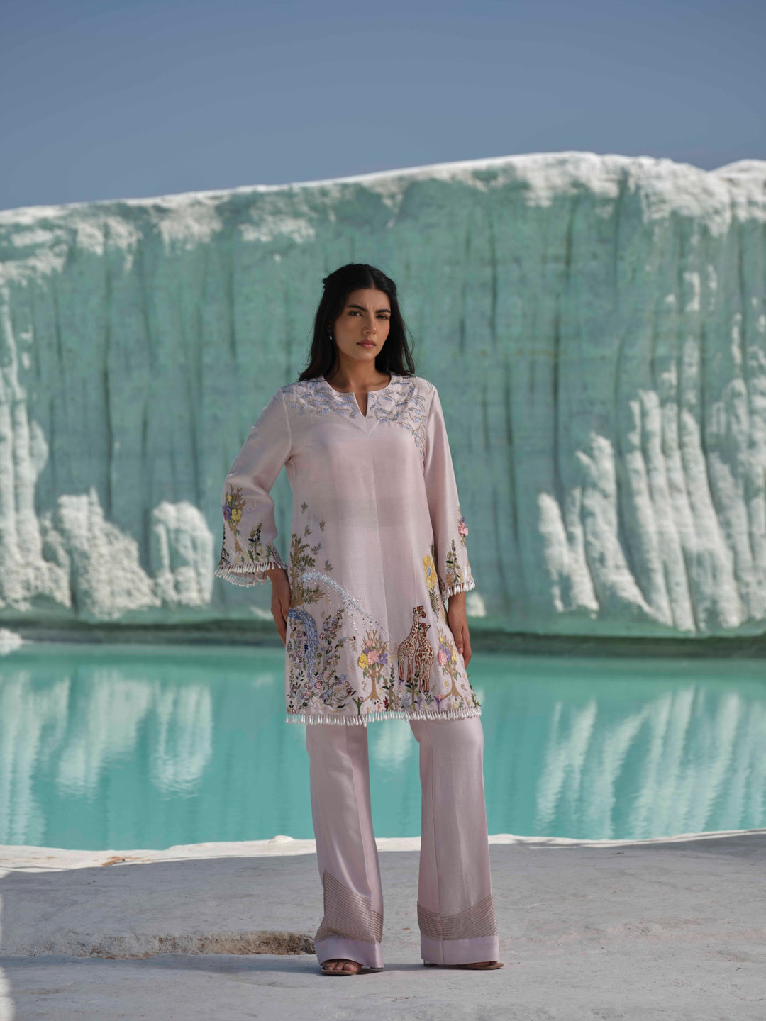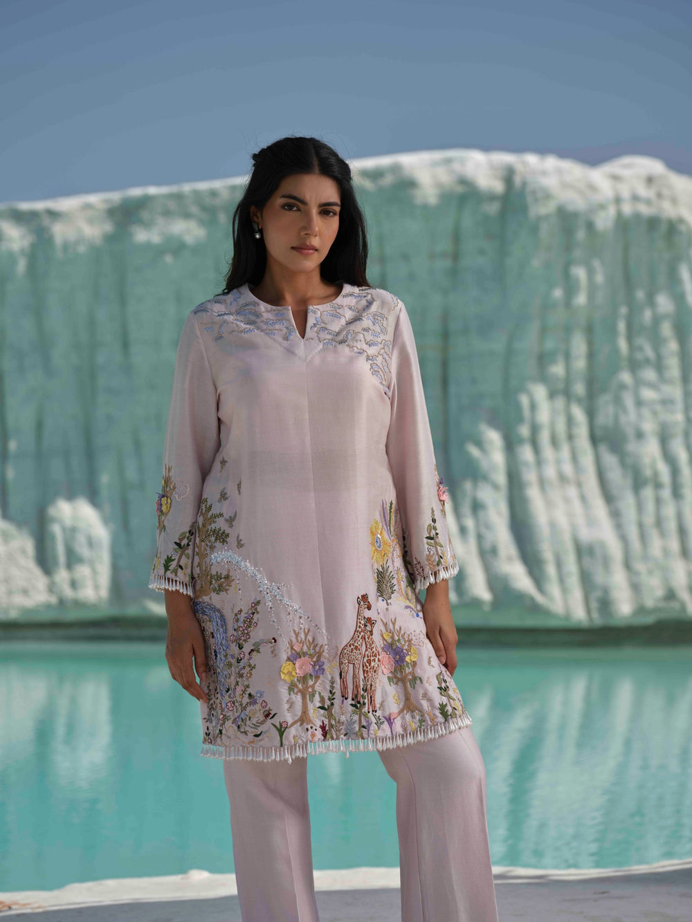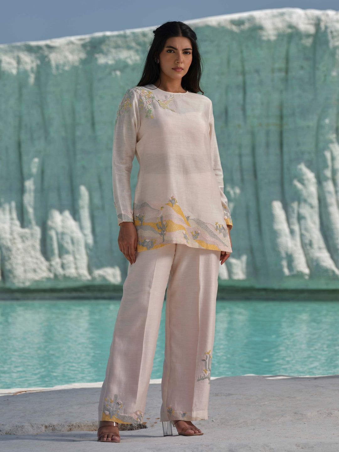 Soft Haze - Ivory Sheer embroidered Coord Set