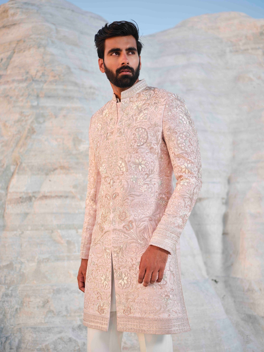 Rose Gold Hand Embroidered Sherwani Set