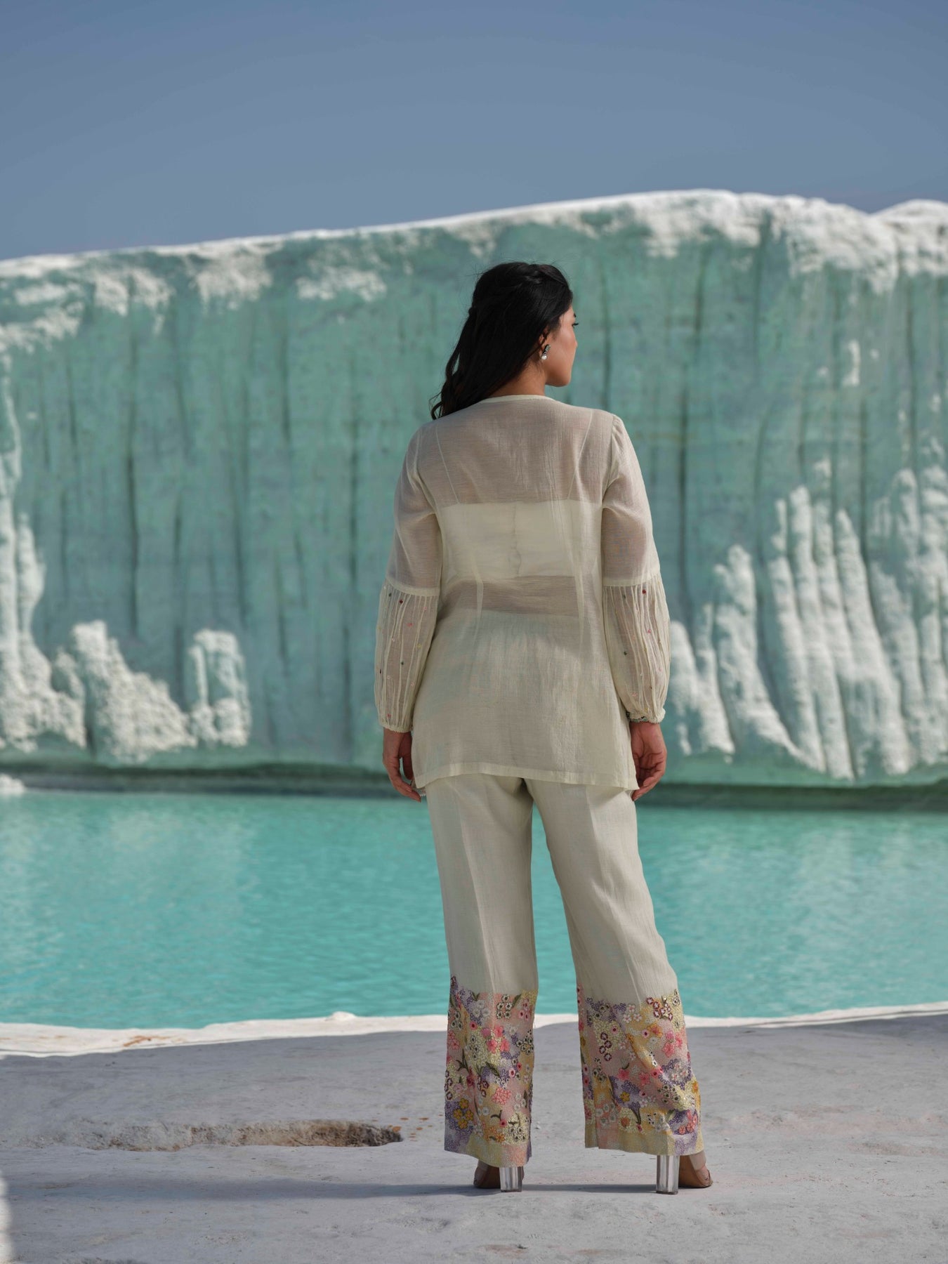 Fabric Composition: Tunic - Khadi Chanderi silk, Pants - Khadi Chanderi silk, Bustier - Satin